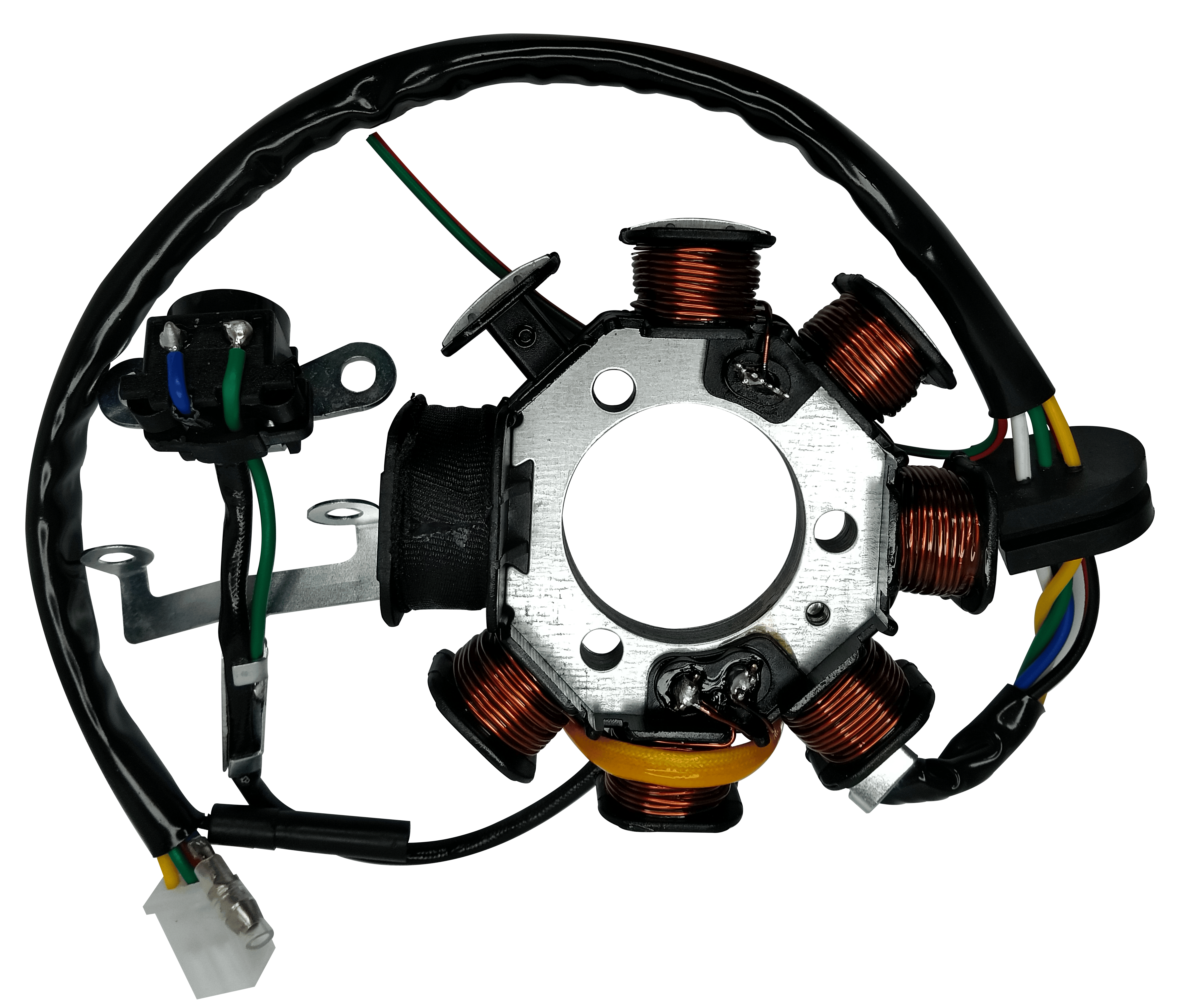 ESTATOR P/ MOTO HONDA CG 125 TITAN KS/ES/KSE 02/02 - XLR 125 01/03 - XLR 125 E 01/03 (6 BOBINAS + 1 BOBINA DE FORCA + 1 BOBINA LIVRE + 6 FIOS)
